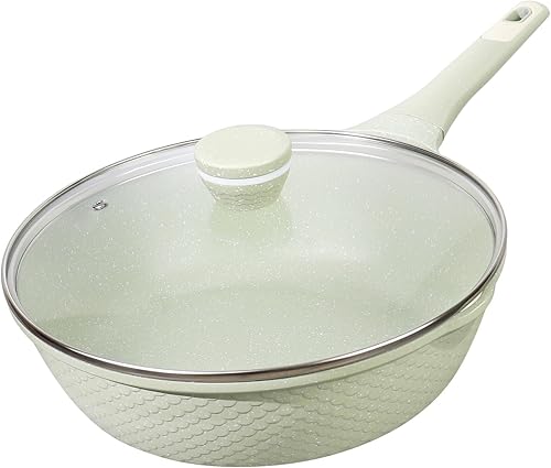 Poêle à Frire Antiadhésive 26 cm avec Couvercle - 100% Sans PFAS/PFOA, Compatible Tous Feux (Induction/Gaz/Vitrocéramique), Revêtement Ultra-Glissant Professionnel - Poêle Poignée Bakélite Résistante