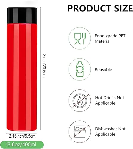 YBCPACK Lot de 12 bouteilles en plastique PET transparent avec couvercles noirs pour smoothie 400 ml, idéal pour l’eau, le jus, le lait et les autres boissons faites à la maison