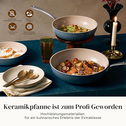 Redchef Lot de 4 poêles à frire en céramique et aluminium avec revêtement en céramique antiadhésives et à induction 20/24/28 cm pour tous les types de plaques de cuisson, sans PTFE, sans PFOA, passent