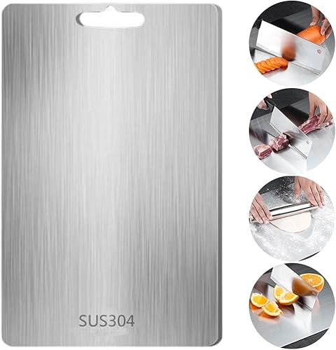 Planche à Découper en Titane, 304 Acier Inoxydable Double Face de Qualité Alimentaire Planche à Découper, Cuisine Premium Titanium Planche à Découper pour Viande, Fromage, Fruits, Légumes (29x20cm)