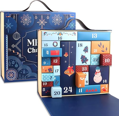 Binggunyo Calendrier de l'Avent, Calendrier De l'Avent a Remplir, Calendrier De l'Avent DIY avec 24 Boîte Cadeau de Noël, Calendrier de Compte à Rebours de Noël, Kit Calendrier de l'Avent (Navy blue)
