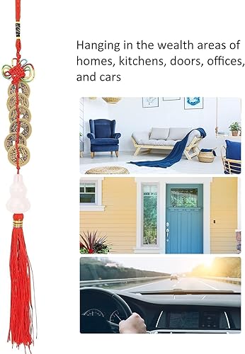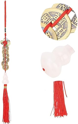 Agatige Feng Shui pièces, Gourde de Jade Blanche en Bronze pièces Chinoises de la Chance pièces de Feng Shui Nœud Chinois et Monnaie Porte-Bonheur en Forme Monnaie pour Richesse et de réussite