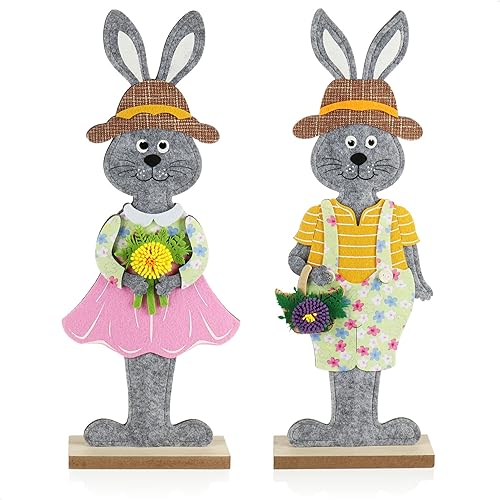 com-four® Support décoratif pour pâques - Joli Lapin de pâques en Feutre - décoration de pâques à Poser - décoration (1 pièce - 38cm)