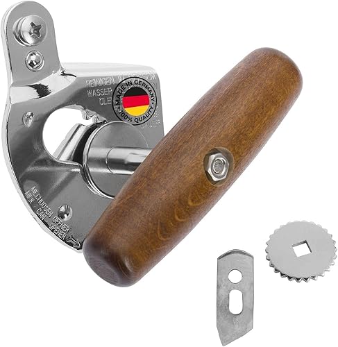 Westmark Set de 3 pièces : 1 Ouvre-Boîte Professionnel Titan + 1 Lame de Rechange + 1 Roue de rechange, Acier/bois/acier laqué, argenté/brun/noir, 122422E6