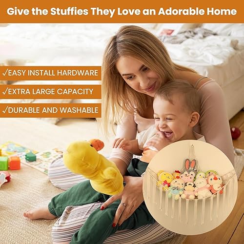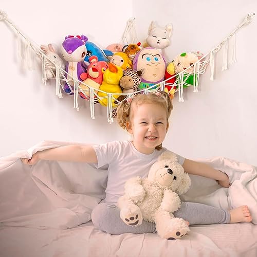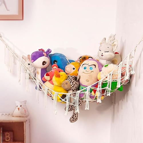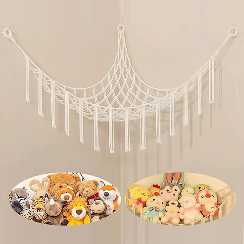 Filet de rangement pour jouets - 100 x 100 x 155 cm - Hamac de rangement pour animaux en peluche - Style bohème - Pour chambre d'enfant, salon, chambre à coucher, salle de jeux, chambre d'enfant