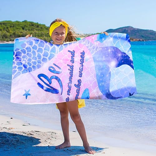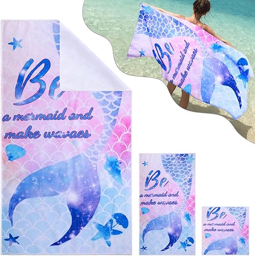 Zocipro 3pcs Serviettes de Plage Sirène pour Enfants, 152 x 76 cm en Microfibre Anti-Sable Légères, à Séchage Rapide, pour la Natation, Le Camping, la Plage, la Salle de Sport (3 Tailles)