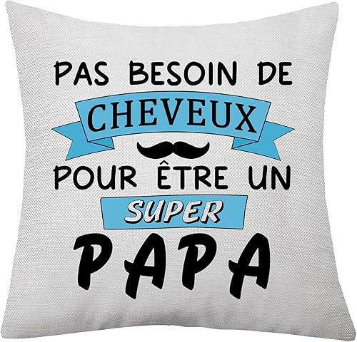Papa Housse de Coussin Cadeau de la Fête des Pères Cadeau de Papa Fille Fils Taie D'oreiller pour Papa Grand-Père Beau-Père Oncle Housse de Coussin Taie D'oreiller Homme Anniversaire Noël (Cheveux)