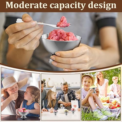 Ghshanog Lot de 4 bols à crème glacée en acier inoxydable - 250 ml - Réutilisables - Pour sundae, crème glacée, pudding, salade, cocktail, condiment