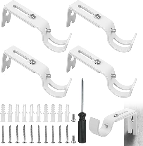 Support de Tringle à Rideau Réglable,4 Pièces Supports Murale Réglables,Support pour Tringle à Rideau,Compatible avec les tringles à rideau d'un Diamètre Maximal de 20mm-25mm (Blanc)