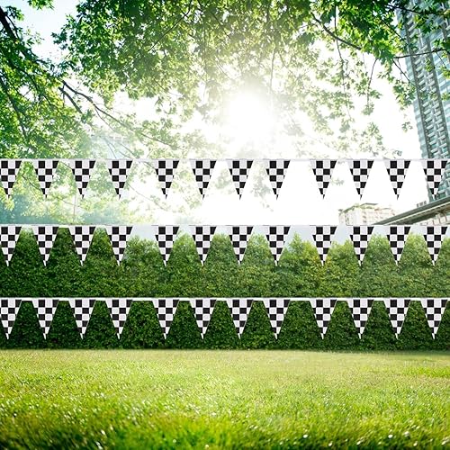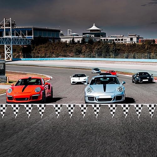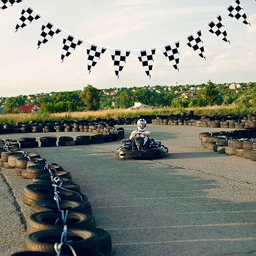 CWPFVQA 1 Ensemble De Drapeaux De Course, Drapeaux Triangulaires, Drapeaux À Damier Noir Et Blanc, Décorations De Compétition De Course, Décorations De Scène De Fête De Course