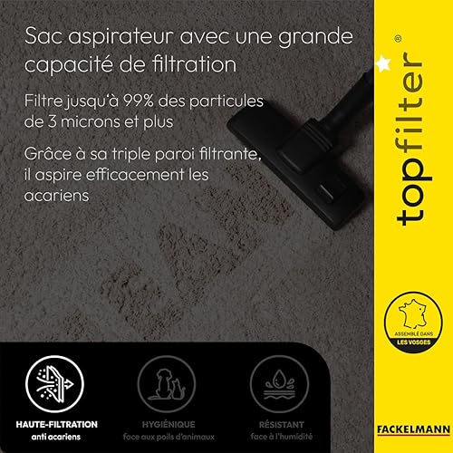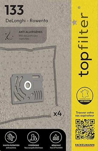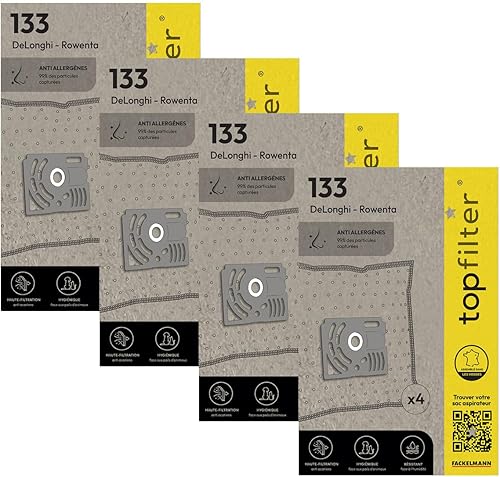 TopFilter 64133 Lot de 4 sacs aspirateur Rowenta, sac aspirateur, accessoire aspirateur, poche aspirateur, Non tissé polypropylène, Plastique, 30 x 26 cm, Blanc