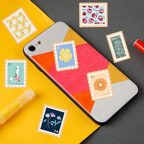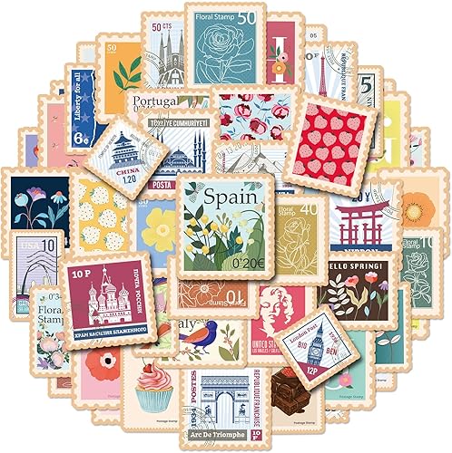 Qpout 50pcs Autocollants de Timbre-poste Vintage, Pack d’autocollants de scrapbook vintage pour bouteilles d’eau, autocollants de fleurs pour l’artisanat d’art de bricolage pour enfants Bullet Journal