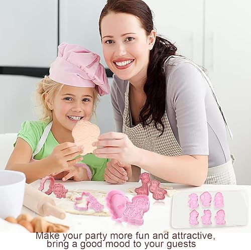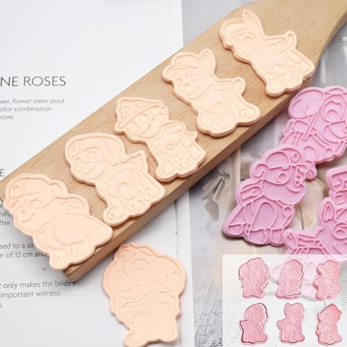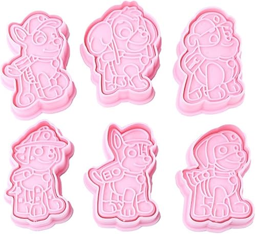 6 Pièces Moule Biscuit Emporte Pièce Dessin Animé Emporte Pièces en Plastique 3D Avec Poussoir Rose Decoupoir Patisserie Emporte Pièce en Forme de Dessin Animé Enfants pour Décoration de Biscuits