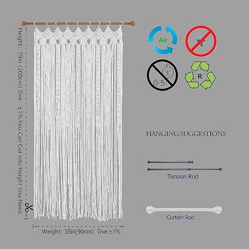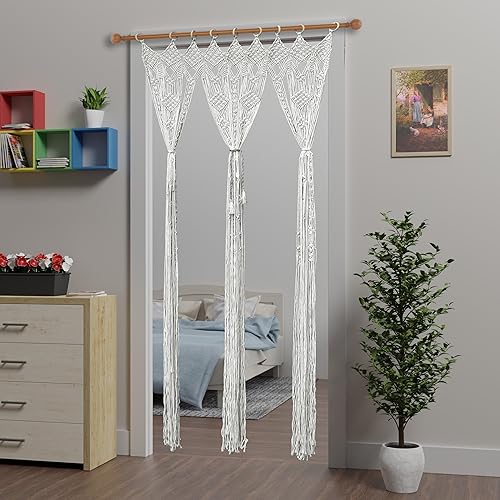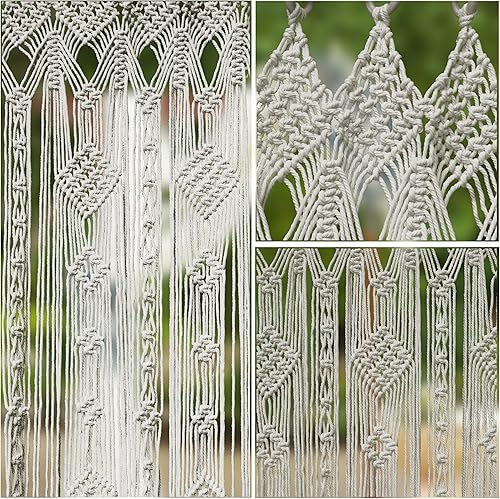 Ateasierlife Rideau de porte en macramé de style bohème (blanc, 90 x 200 cm, carré)
