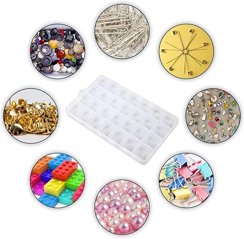 4 Pièces 28 Grilles Boite Rangement Plastique Perles, Petite Boite de Rangement, Boite Compartiment, Boite Rangement Vis Visserie Diamond Painting, avec Pince À Épiler et un Crochet Adhésif