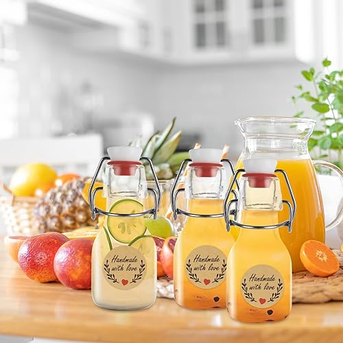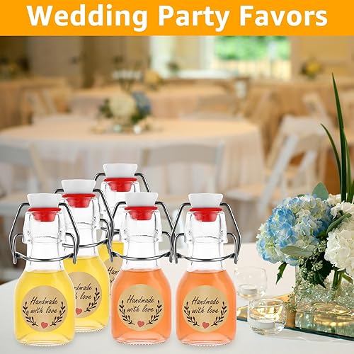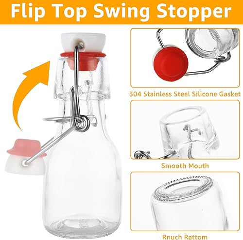 DAJAVE Lot de 30 bouteilles en verre de 60 ml avec bouchon à étrier, petites bouteilles à remplir, avec 2 entonnoirs en silicone et 3 étiquettes, bouteilles en verre pour huile, vinaigre, jus et