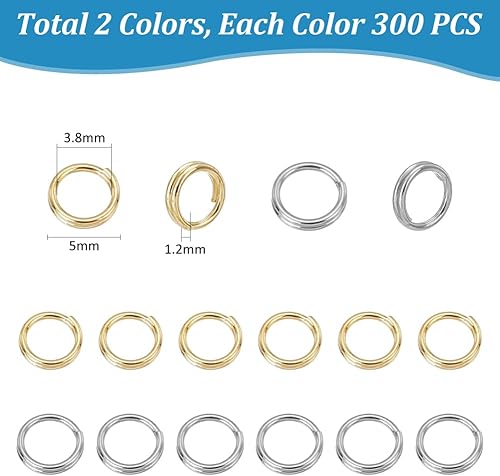 UNICRAFTALE 600pcs 2 couleurs Anneaux de Jonction Fendus Acier Inoxydable 5mm Doubles Boucles Mini Porte Clés Petits Anneaux Métal Connecteurs pour Porte Clés Bijoux Colliers Bracelet Boucle D'Oreille