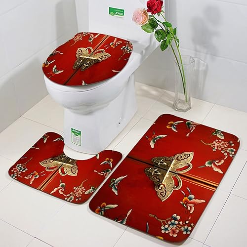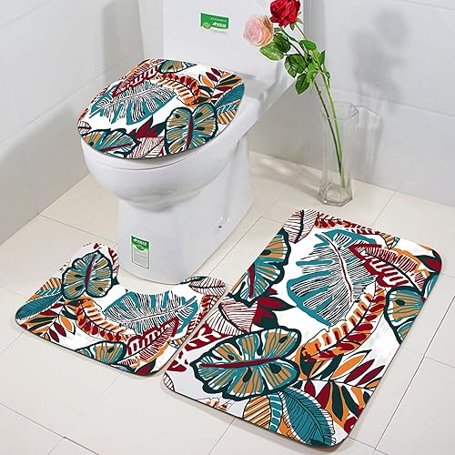 FEHWI Lot de 3 Tapis de Bain antidérapants et lavables pour la Salle de Bain,Douche,Baignoire,Couleurs Vives des Feuilles Tropicales, Feuilles Exotiques aux Tons Audacieux,décoration WC Tapis de Sol