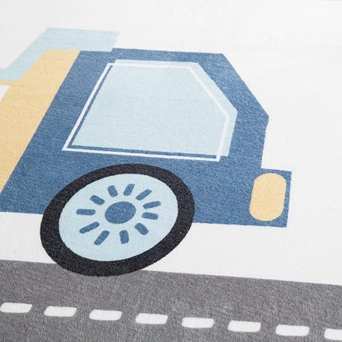 Paco Home Tapis Enfant Tapis Chambre Enfant Voitures Rue Motif Montagne Nuage Crème Bleu Gris, Dimension:120x160 cm