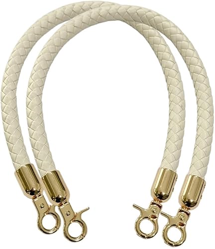 YKAFADE Lot de 2 anses de sac en cuir synthétique de 40 cm - Poignées de sac tressées - Sangle d'épaule - Sangle de rechange pour sac à main - Sangle en cuir pour portefeuille DIY - Blanc