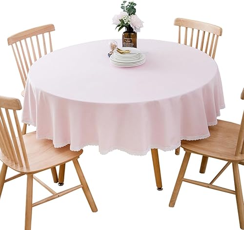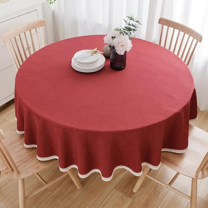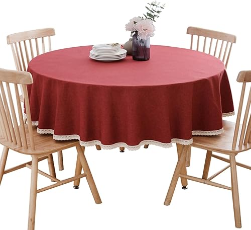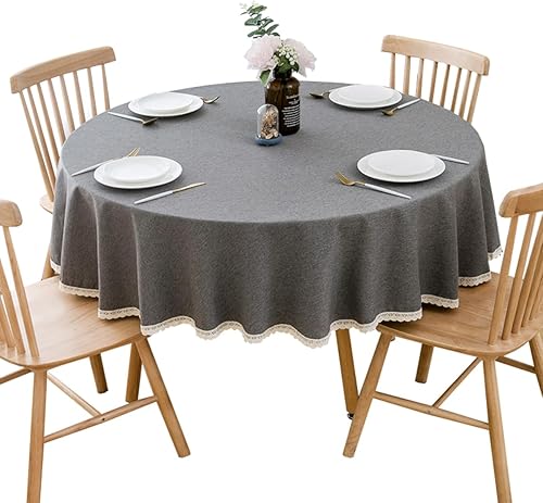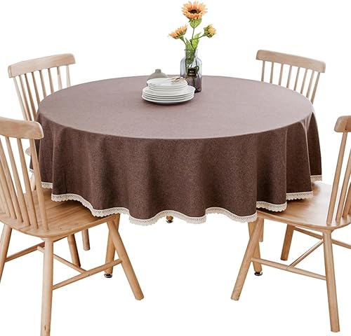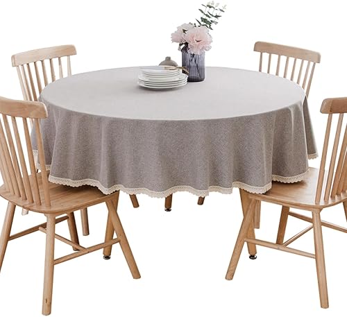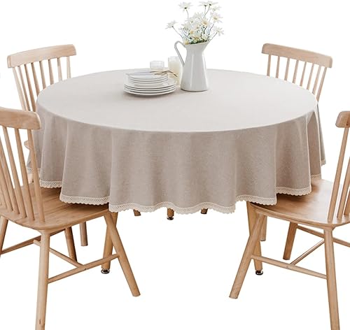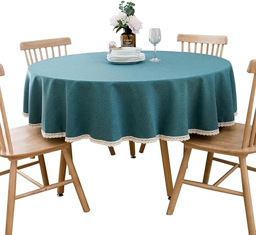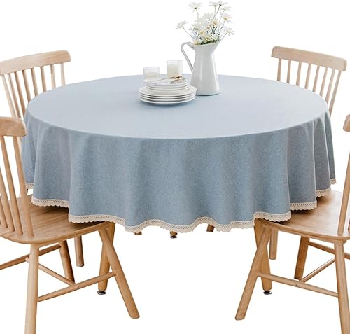 BHOMTY Nappe Ronde en Coton et Lin Protéger et décorer la Table Bleu Clair Diamètre 140 cm