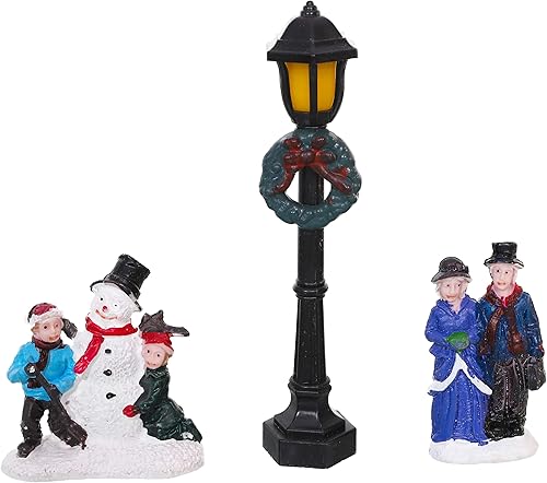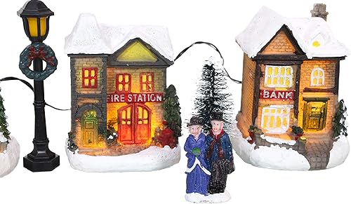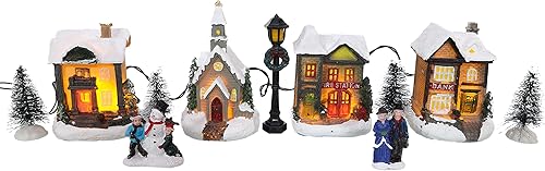 Toyland® 12 pièces Mini scène de Village Lumineuse avec lumières LED - Fonctionnement à Piles - Décoration de Noël