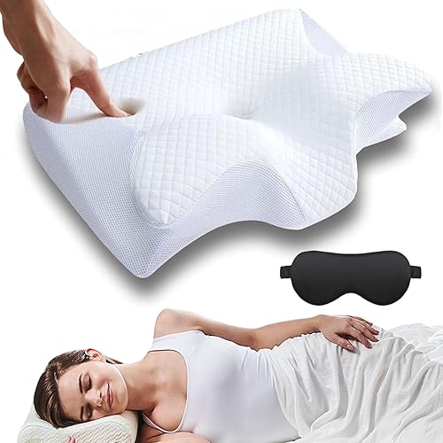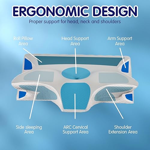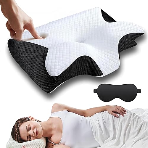 Cervimed Oreiller, Oreiller Ergonomique Cervical Cervimed, Mousse à Mémoire De Forme Avec Taie D'oreiller, Six Zones Profilées Pour Les Côtés, Le Dos Et L'abdomen, Rebondit En 3 Secondes (Black)