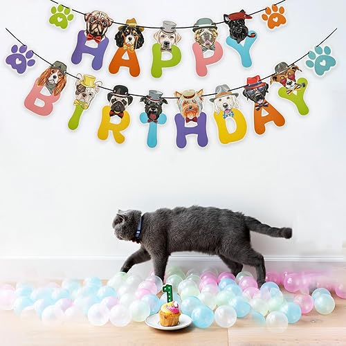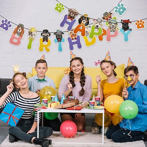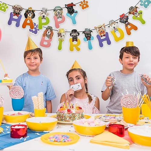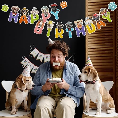 Bannière d'anniversaire sur le thème du chien - Décoration de fête d'anniversaire - Panneau « Happy Birthday » pour toile de fond portrait - Bannière d'anniversaire pour chien - Chiot - Décorations de