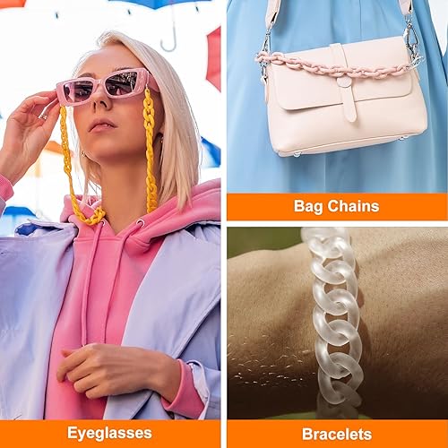 QUARKZMAN 200pcs Acrylique Chaîne Lien Anneaux, Lien Connecteurs Ouvert Lien Anneaux, Plastique C-Agrafe crochet pour DIY Porte-monnaie Lunettes Bijoux Fabrication Chaîne, Foncé Rose