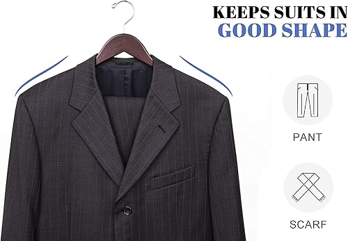 Amber Home Lot de 20 cintres en Bois de Couleur Noyer pour Robe de mariée, Chemises, Manteaux, Costumes, Pantalons avec Barre antidérapante Finition Lisse et encoches Bien découpées