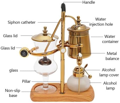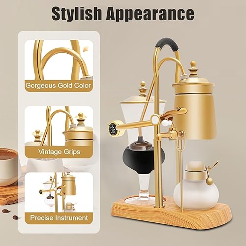 Belgian Belgium Royal Family Balance Siphon Coffee Maker Vacuum Brewing System 400 ml/15 oz Stainless Steel Vintage Siphon Brewer Gold