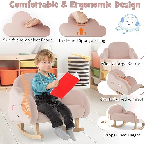 GOPLUS Fauteuil à Bascule Enfant, Fauteuil Rembourré en Éponge avec Pieds en Bois Massif & Patins Antidérapants, Chaise à Bascule en Velours avec Accoudoirs, Cadeau pour Enfants 3-5 Ans, Rose