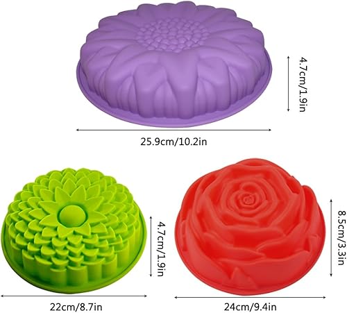SENHAI Lot de 3 moules en Forme de Fleurs en Silicone pour gâteau, Tarte, Grande Forme Ronde de Tournesol, chrysanthème, Rose, Moule de Cuisson Anti-adhésif pour fête d'anniversaire Artisanale