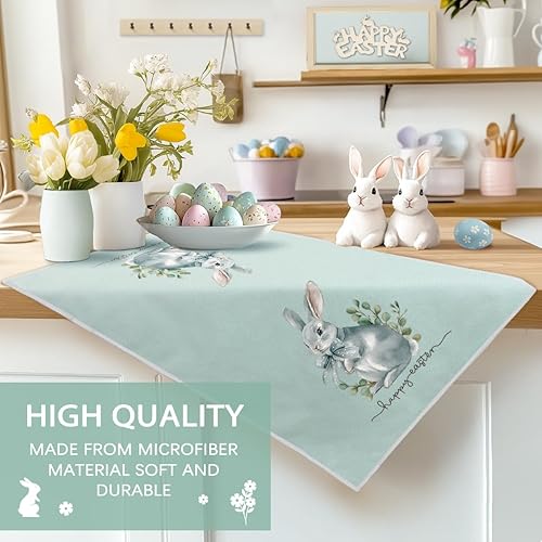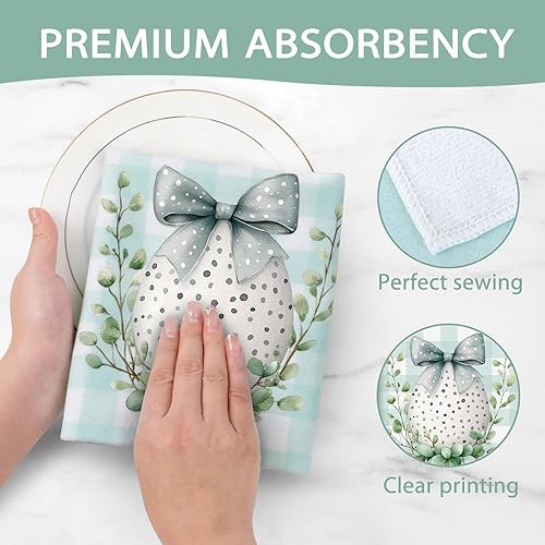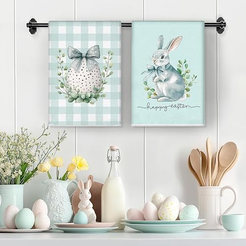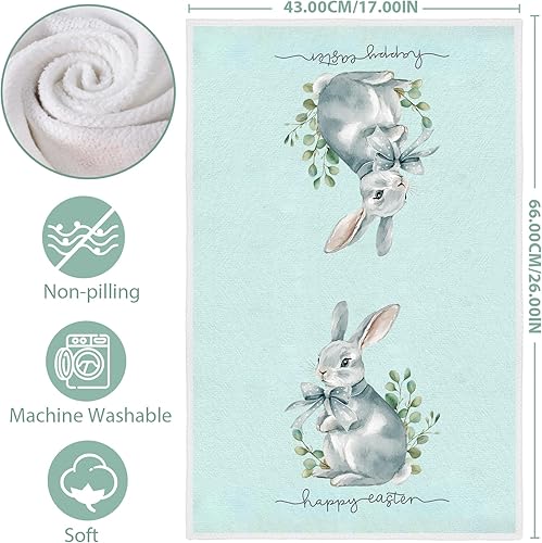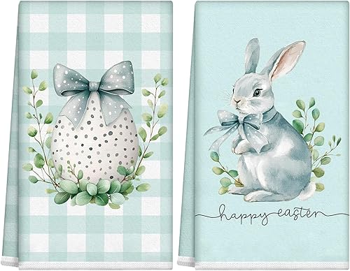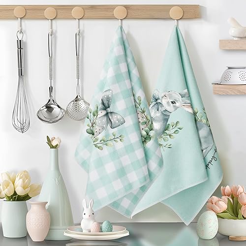 VeIef Torchon, Torchons de Cuisine avec Lapins et Oeufs de Pâques, Torchon Cuisine décoration de Pâques, Torchons de Cuisine décoration de Printemps, Set de 2 torchons 43x66 cm, Bleu