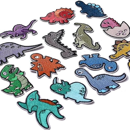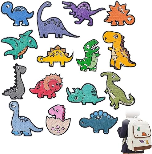 ZWWOGE Ecusson a Coudre Enfant,15 Pièces Patch Vetement,Sticker Vetement Thermocollant,Motifs de dinosaures Autocollant Thermocollant Vetement,Piece Thermocollante,pour Vestes Jeans Sacs