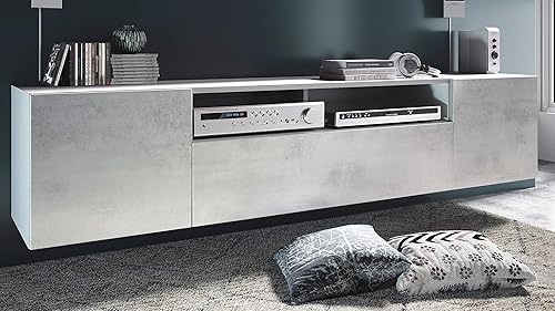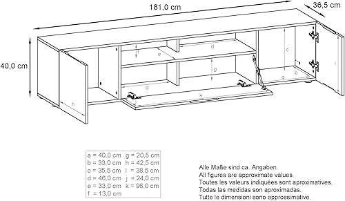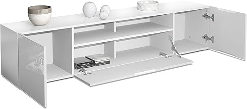 Vladon Buffet Bas Mogan, Meuble TV avec 2 Portes, 1 clapet et 1 Compartiment Ouvert, Blanc Mat/Chêne Nature (181 x 39 x 35 cm)