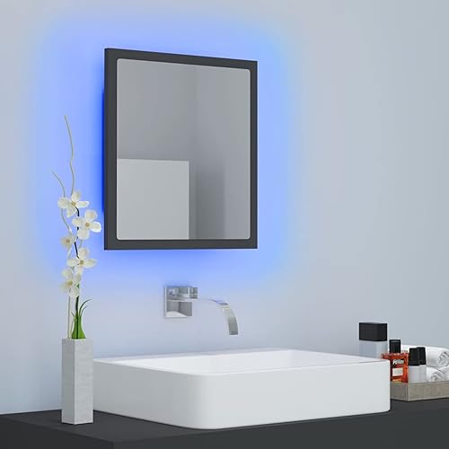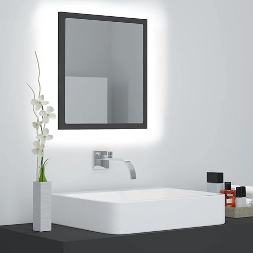 RONGQI Miroir de salle de bain à LED, miroir mural, miroir de salle de bain, miroir de salle de bain, miroir de salle de bain, gris aggloméré, 40 x 8,5 x 37 cm