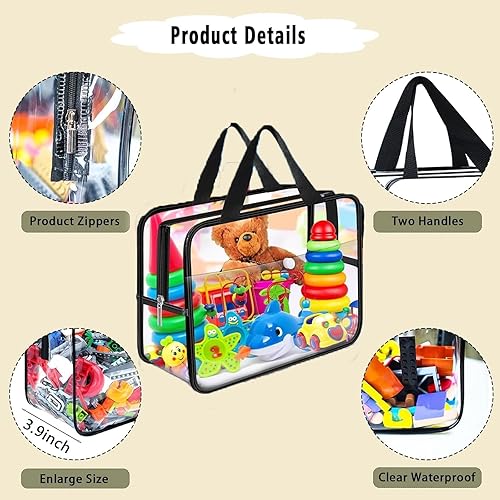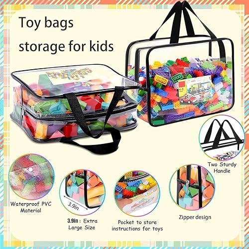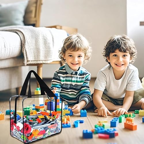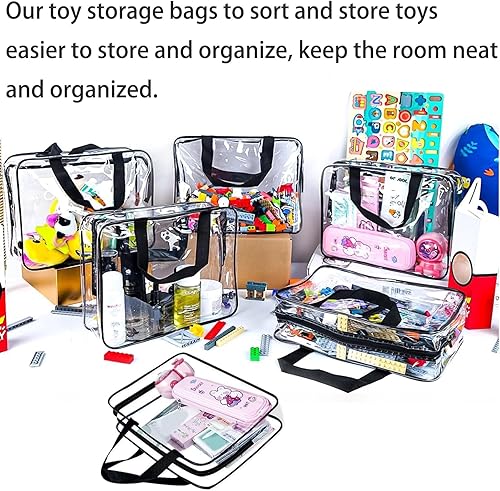 Lot de 3 sacs de rangement transparents pour jouets avec poignées, sacs de rangement pour jouets, petits sacs de rangement pour jouets, sacs de rangement pour jouets, sacs étanches pour jeux de