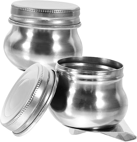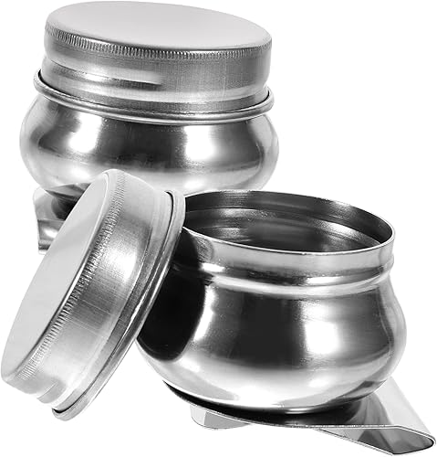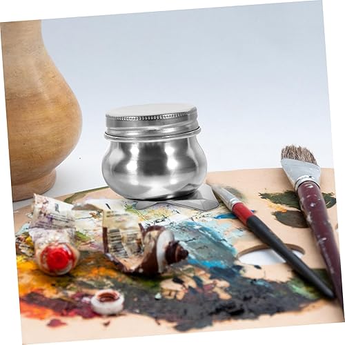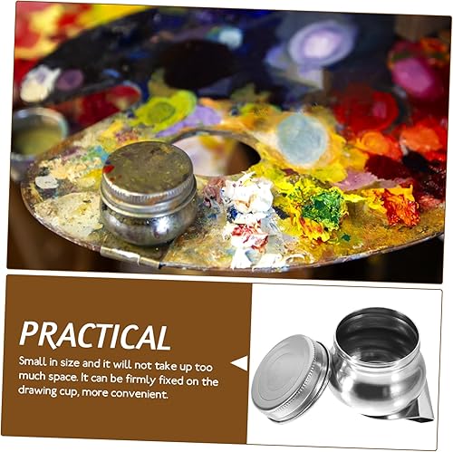 Lurrose 2 Pièces Pot De Mélange De Peinture à L'huile En Acier Inoxydable Boîte Vide Pour Aquarelle Pot De Peinture à L'huile Louche Fournitures De Peinture Trou Unique Huile De Métal