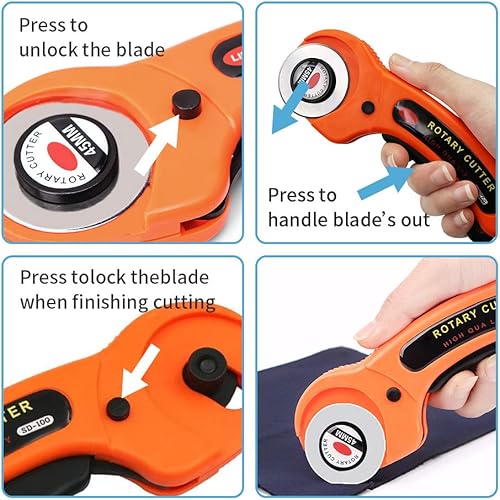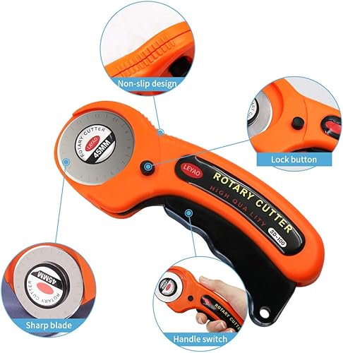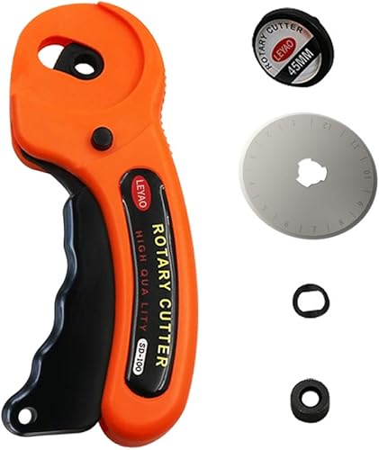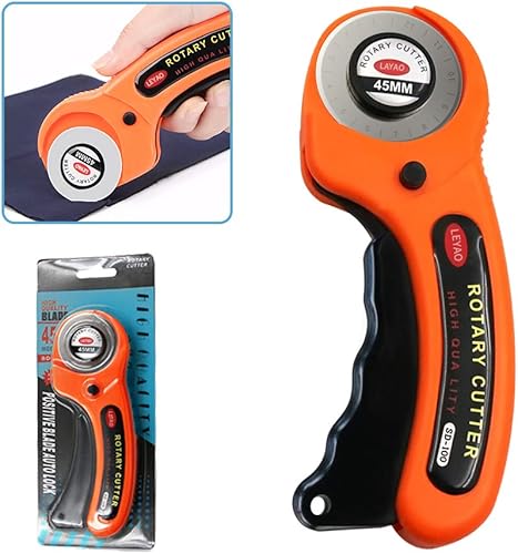 Cutter Rotatif, ZoneYan Roulette Couture Tissu avec Lames Remplaçable(45mm), Couteau Rotatif avec Mécanisme de Protection pour La Couture, Le Patchwork, Le Cuir, Le Tissu, Papier