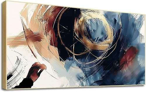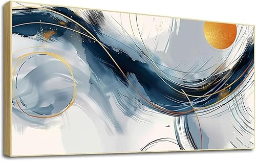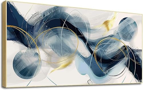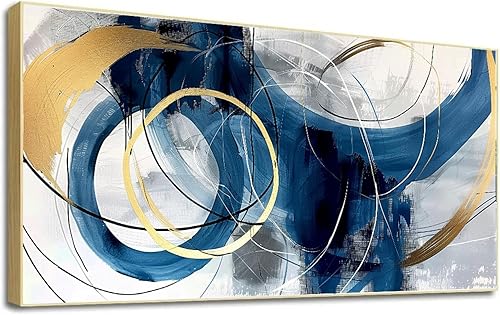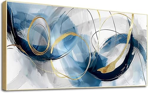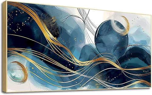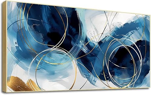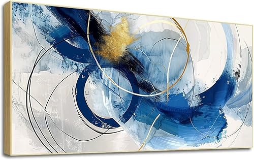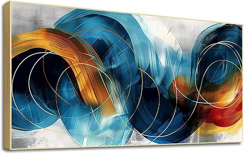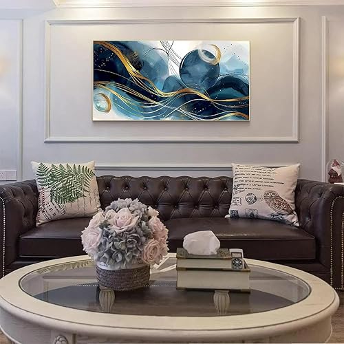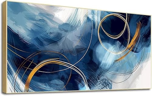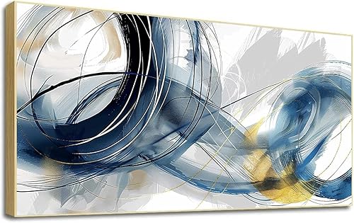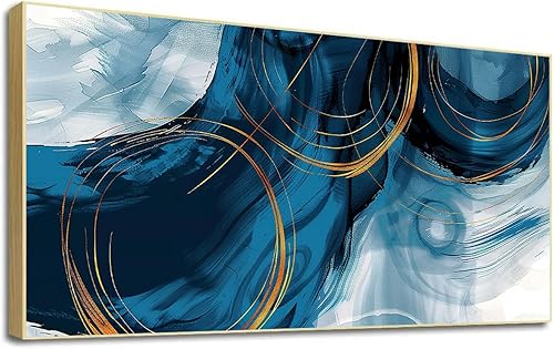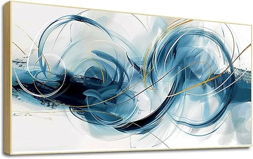 LSYALUCK Art mural sur toile - Peintures d'art abstrait - Bleu fantastique - Graffiti coloré - Illustration moderne pour salon, bureau, chambre à coucher - 90 x 185 cm - Avec cadre doré