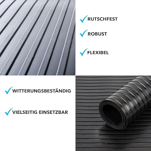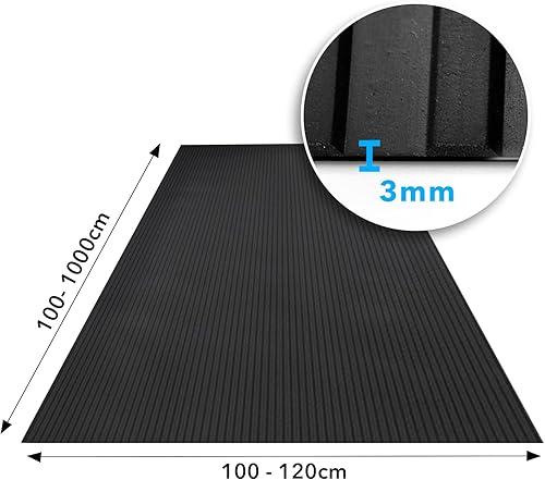 KARAT | Dalle Caoutchouc | Composition 100% Caoutchouc | Sol Caoutchouc | Sol Protection| Tapis Caoutchouc - Revêtement de Sol | Finition nervurée Large - 3mm, 100 x 200 cm