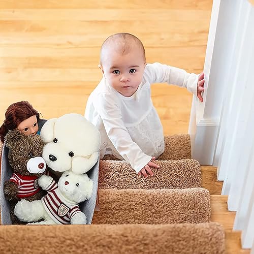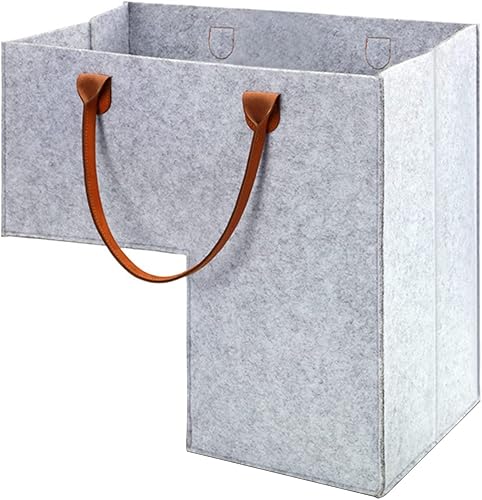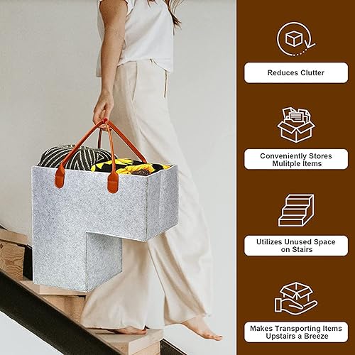 Cymwer Panier d'escalier avec poignées en cuir, grand organisateur de rangement pliable en forme de L, organiseur de rangement d'escalier en feutre avec poignées, panier pliable pour décoration