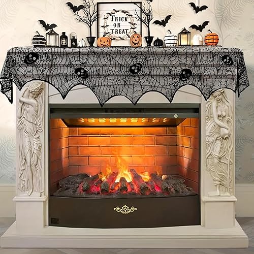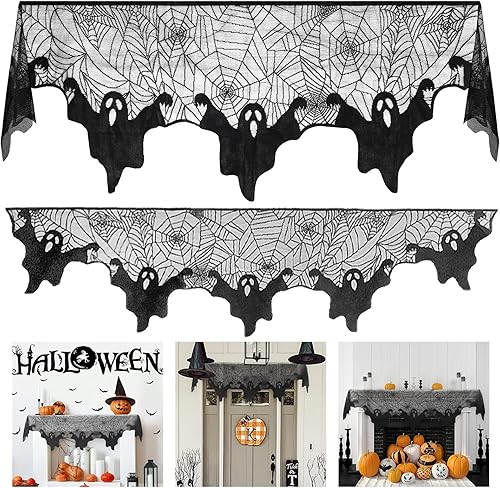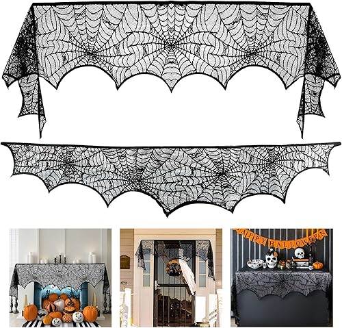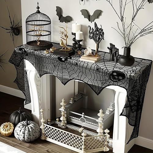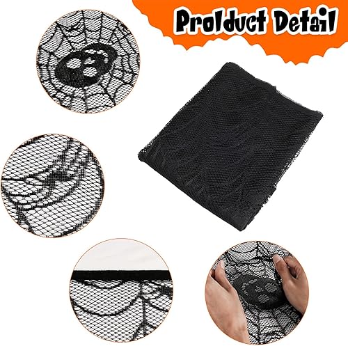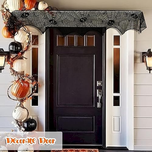 Wzone 45 x 245 cm - Toile d'araignée - Décoration d'Halloween - Squelette - Dentelle noire - Toile d'araignée effrayante - Décoration effrayante pour porte, carnaval, Halloween, fête