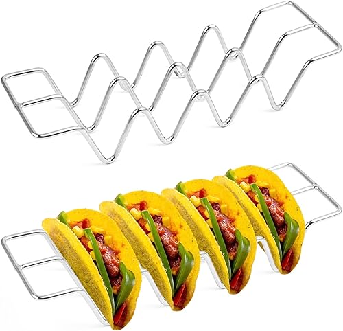 Hriymtd Support pour Tacos en Acier Inoxydable, Support à Tacos, Taco Holders, Plateau de Service à Tacos, pour Restaurant, Pique-Nique, Placer Crêpes Mexicaines, Compatible Four et Lave-Vaisselle