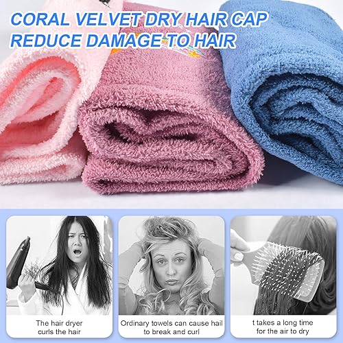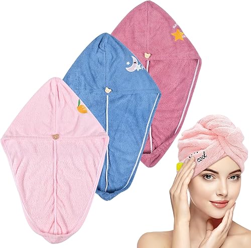 Funmo 3 Pièces Serviettes Microfibre Cheveux,3 Couleurs Serviette Cheveux Sechage Rapide avec Bouton,Serviette à Séchage Rapide Cheveux Super Absorbante,Cheveux Secs Rapidement pour Femmes ((2))