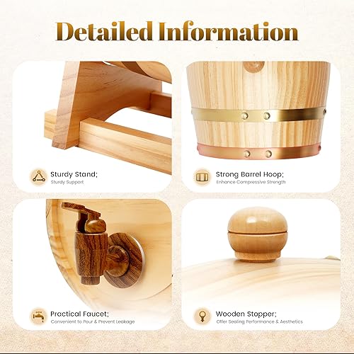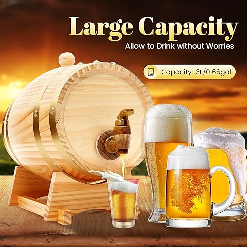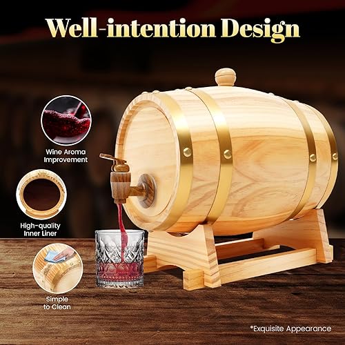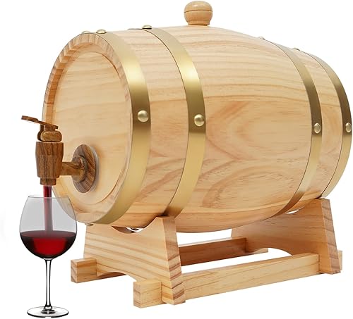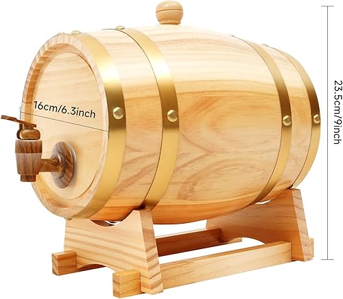 MINRS Petit tonneau en bois de chêne - 3 l - Fût à whisky en bois de chêne - Avec support et robinet - Pour vin et spiritueux - Décoration