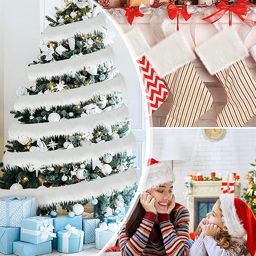 Ruzister Ruban en peluche à poils longs, blanc, pour Noël, tissu en peluche, pour bricolage, projets de couture, fabrication de poupées et décoration, 10 cm x 1,8 m