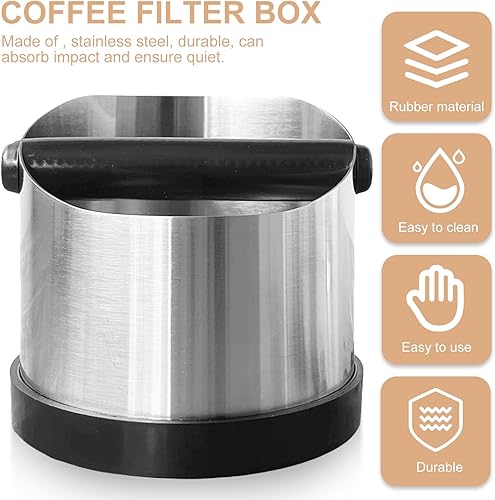 GOMETY Bac À Marc Pour Porte-Filtre: 660ML Robuste Inox Knock Box, Anti-Dérapant & Peu Bruyant, Idéal Pour Usage Domestique Et Café (Argent)