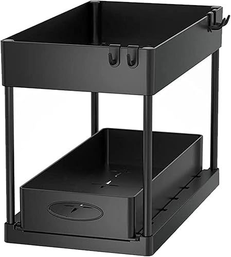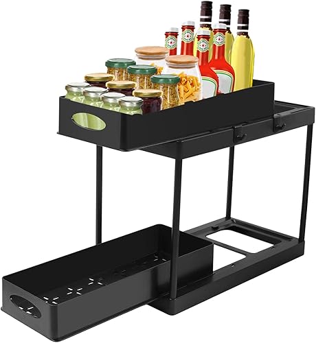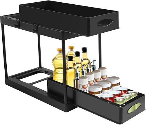 Cuisine à 2 Couches avec 2 tiroirs en Panier, étagère sous l'évier, étagère à épices, Panier Coulissant, Noir